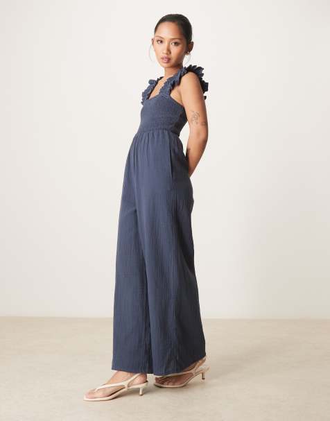 Mamalicious wide leg strappy jumpsuit in navy