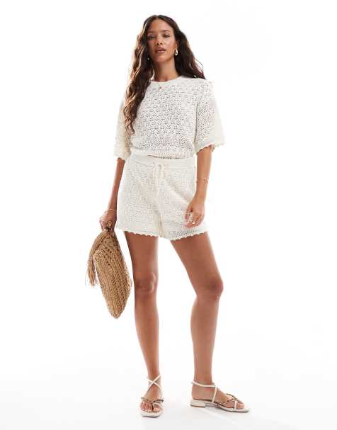 MIX & MATCHGilly Hicks lace trim waffle long sleeve co-ord in white floral