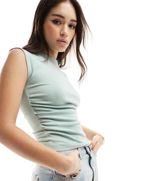 ASOS DESIGN high neck crop top with tab side ties in black