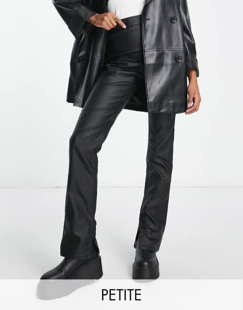 ONLY Petite wide leg faux leather trousers in black