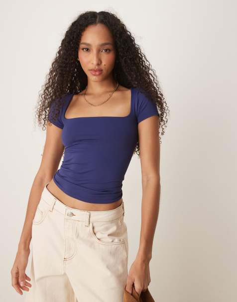 Vesper Bandeau sweetheart neckline crop top in cobalt