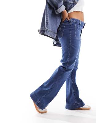Wrangler plus super high rise flare with front pockets in mid blue