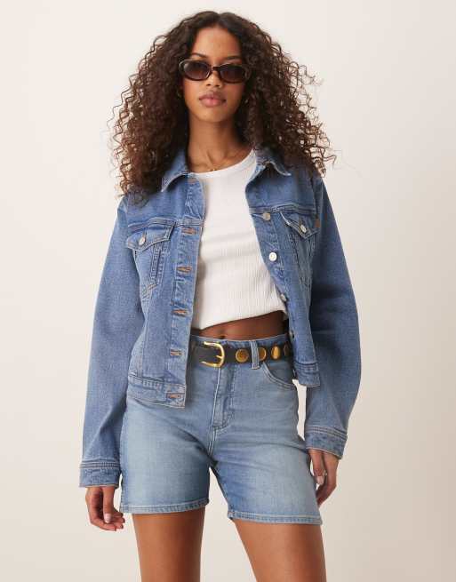 - Non-stretch denim: mid-blue wash