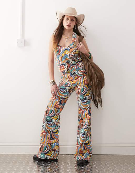 Wrangler 70s print denim crop top & flare jeans co-ord