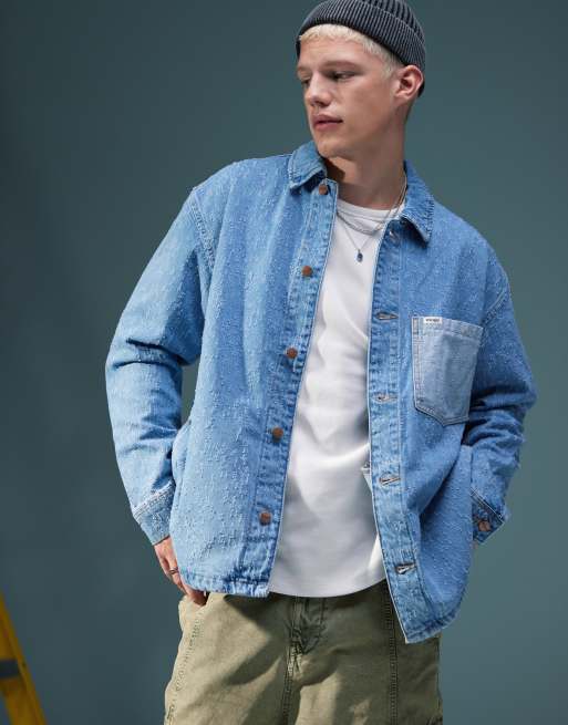 Wrangler Novak acid wash denim chore jacket relaxed fit in light wash co-ord