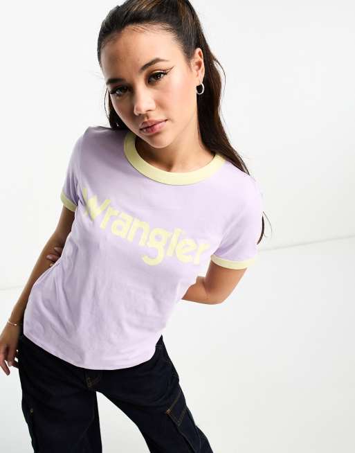 Wrangler ringer tee with logo in pastel violet