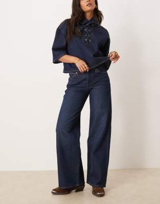 Wrangler wide leg jeans in washed navy