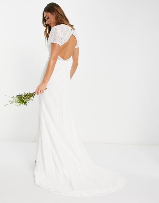 Y.A.S Bridal cut out dress with full bodice and train in white