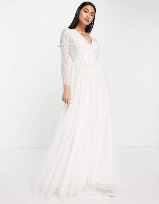 Y.A.S Bridal embellished sequin dress with full skirt in white