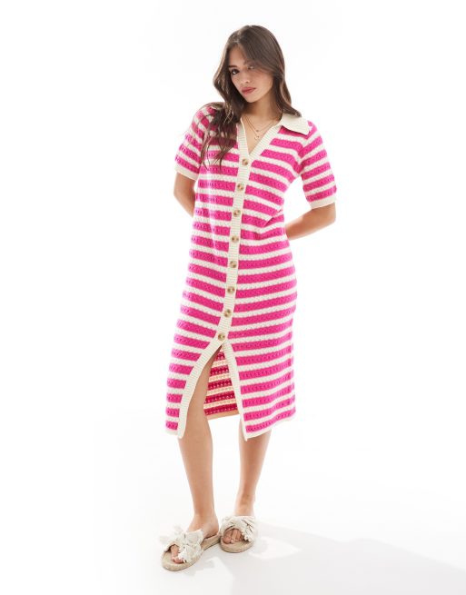 YAS crochet midi dress in pink stripe - MULTI
