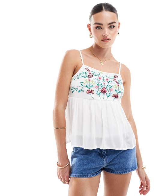Y.A.S Festival embroidered cami top in white