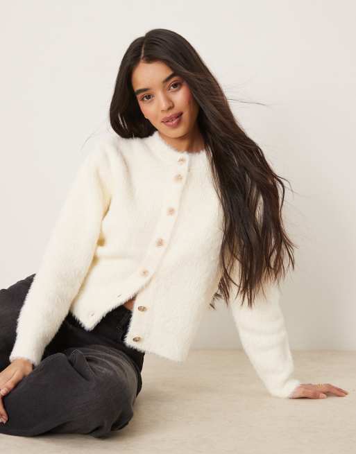 YAS knitted textured cardigan in cream