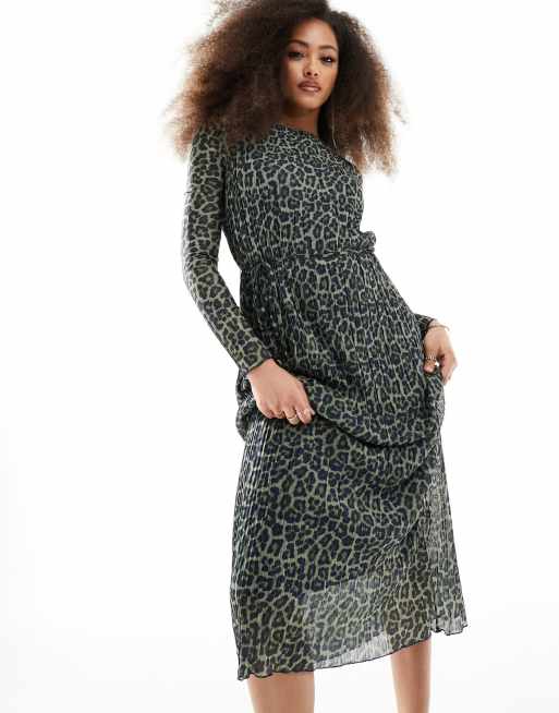 Y.A.S long sleeve maxi dress with insert in leopard print