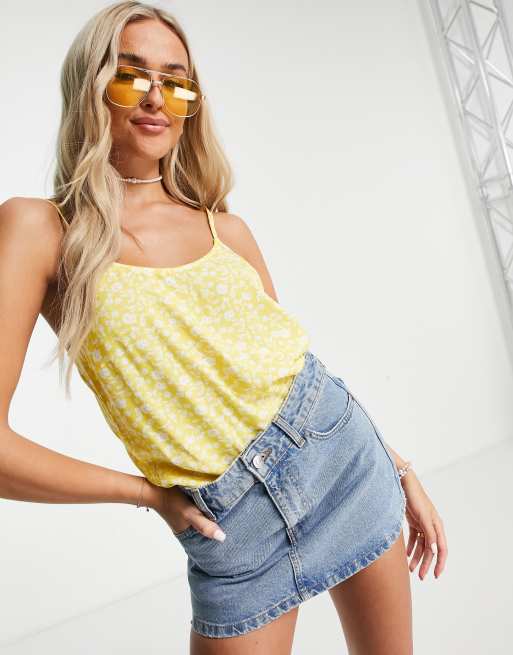 Y.A.S Sanna strappy printed vest top in yellow