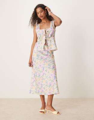 YAS satin midi skirt co-ord in meadow floral print