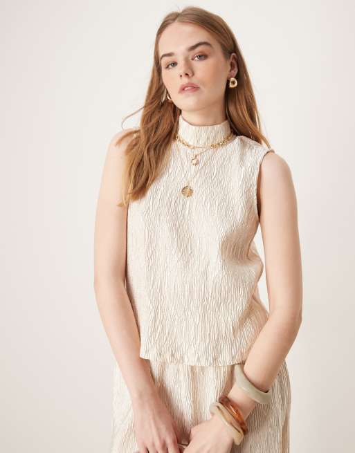 YAS shimmer crinkle high neck sleeveless top co-ord in sandshell