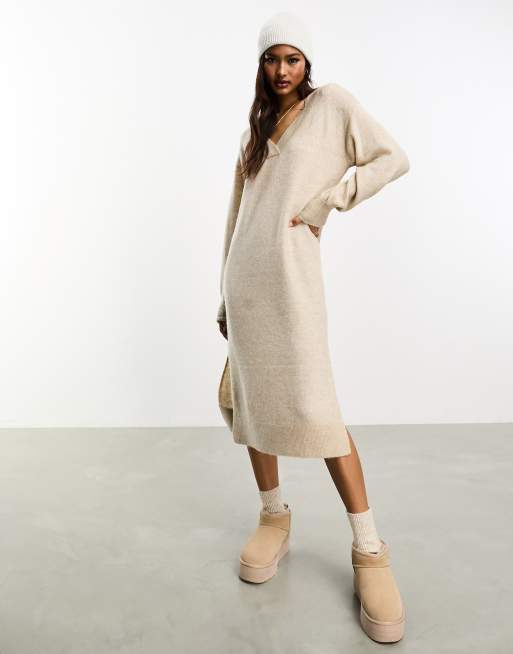 Y.A.S v neck knitted jumper dress in oatmeal
