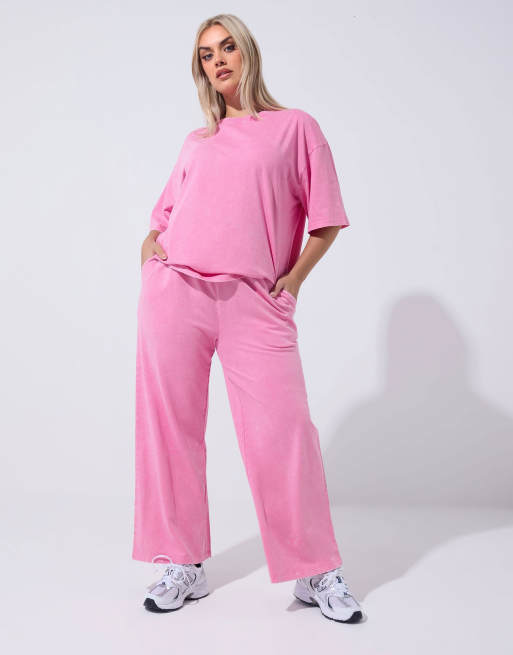 Yours Clothing Acid wash joggers in pink