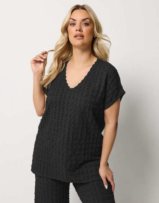 Yours Clothing Bubble textured top & trousers set in black
