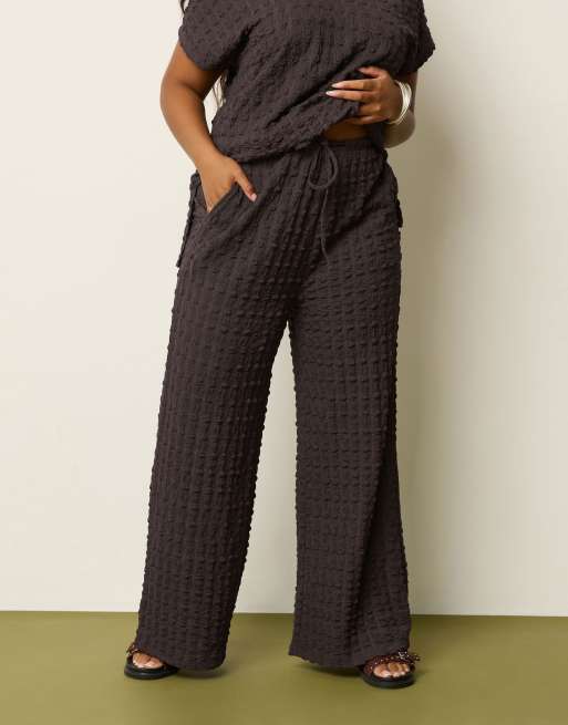 Yours Clothing Bubble textured wide leg trousers in brown