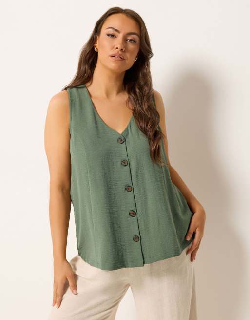 Yours Clothing Button through waistcoat in green