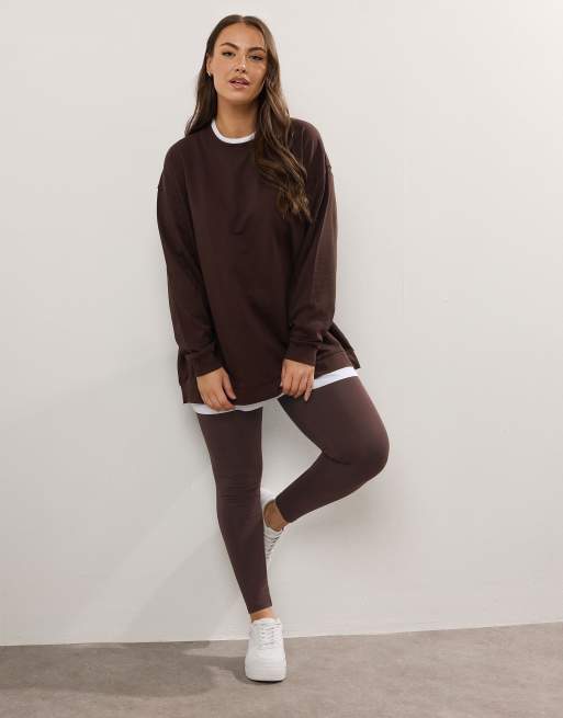 Yours Clothing Cotton stretch leggings in brown