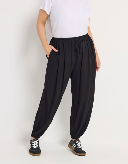 Yours Clothing Cuffed balloon trousers in black