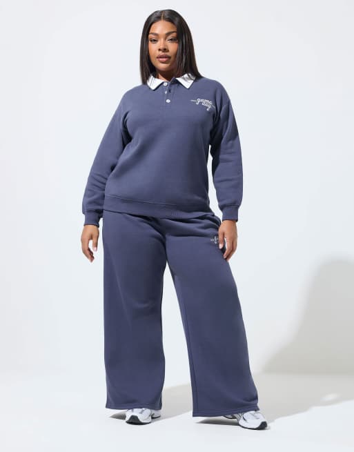 Yours Clothing Embroidered rugby sweatshirt in navy