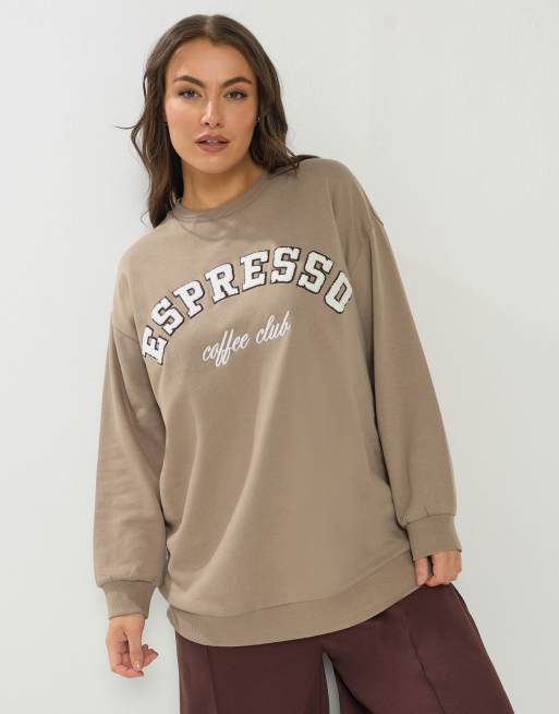 Yours Clothing 'espresso' slogan sweatshirt in brown