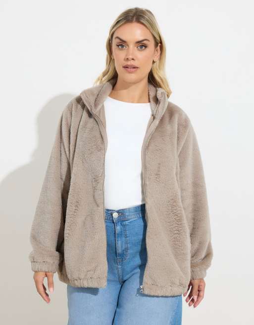 Yours Clothing Faux fur fleece jacket in natural