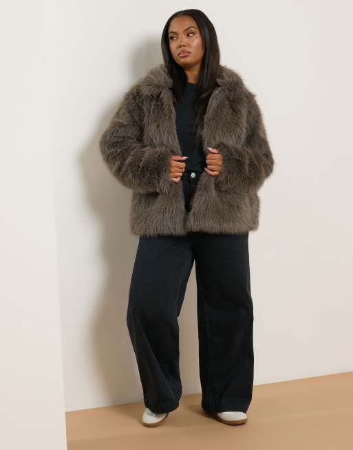 Yours Clothing Faux fur jacket in brown