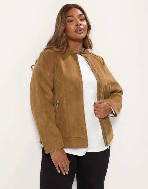 Yours Clothing Faux suede jacket in brown