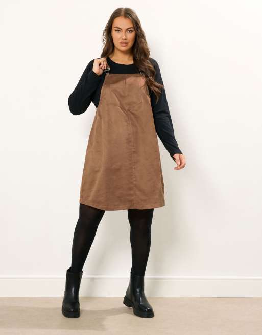 Yours Clothing Faux suede pinafore dress in brown