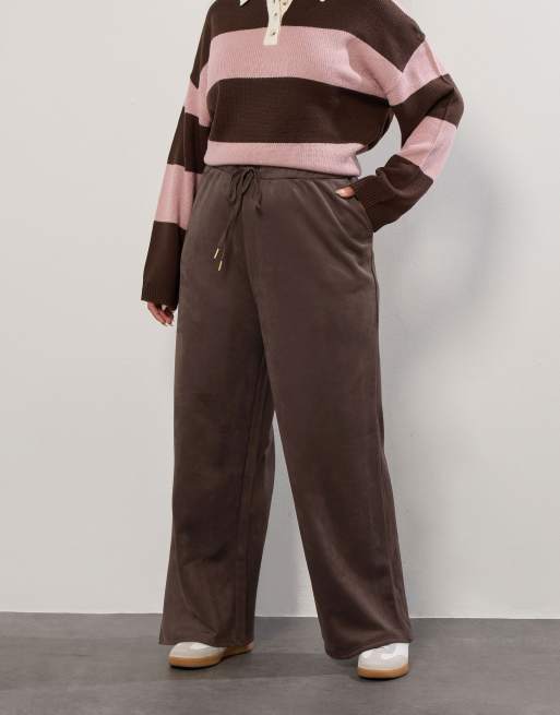 Yours Clothing Faux suede wide leg trousers in brown