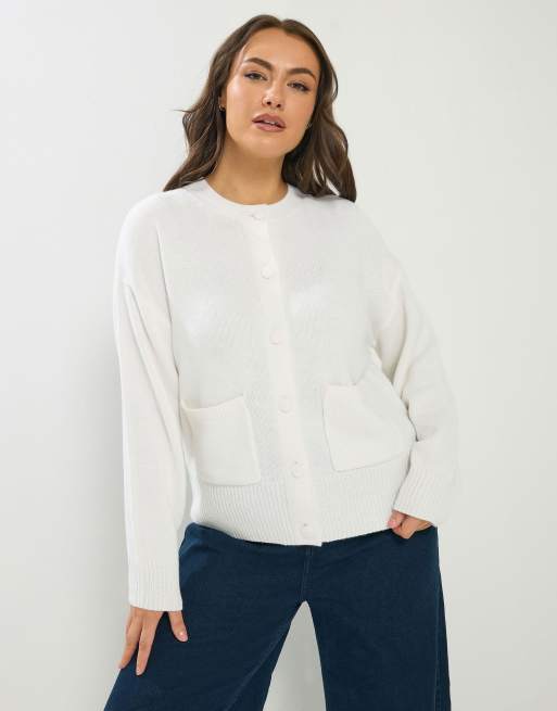 Yours Clothing Knitted bomber cardigan in ivory