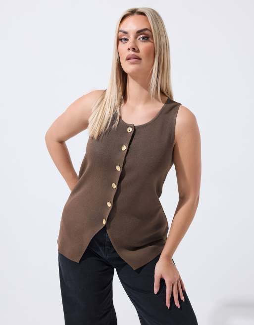 Yours Clothing Knitted vest top in brown