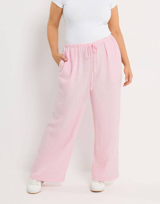 Yours Clothing Linen look wide leg trousers in pink