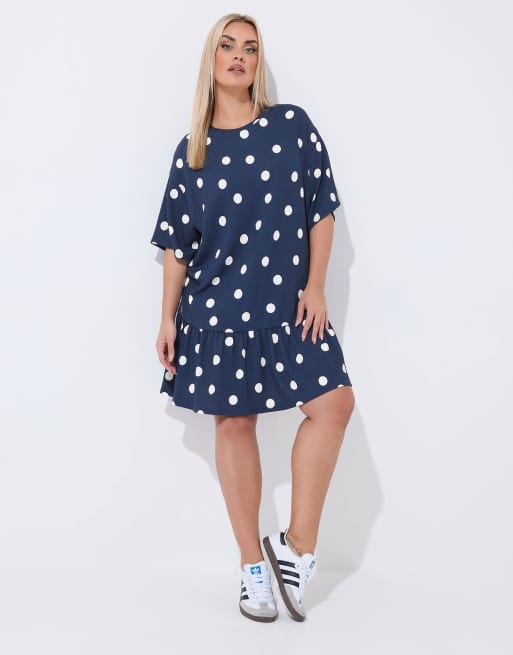 Yours Clothing Polka dot mini dress in blue