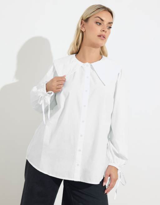 Yours Clothing Poplin statement collar shirt in white