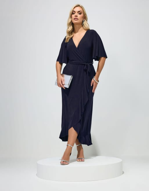 Yours Clothing Ruffle hem wrap dress in blue