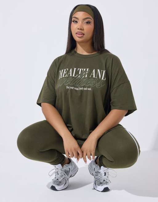 Yours Clothing Slogan active t-shirt in green