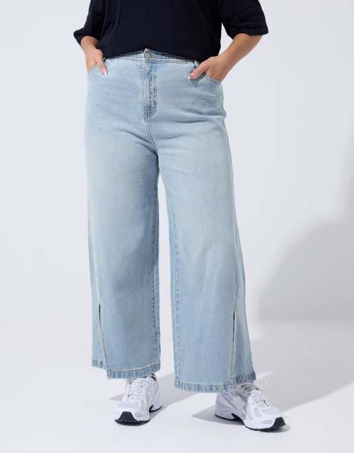 Yours Clothing Split hem wide leg jeans in blue