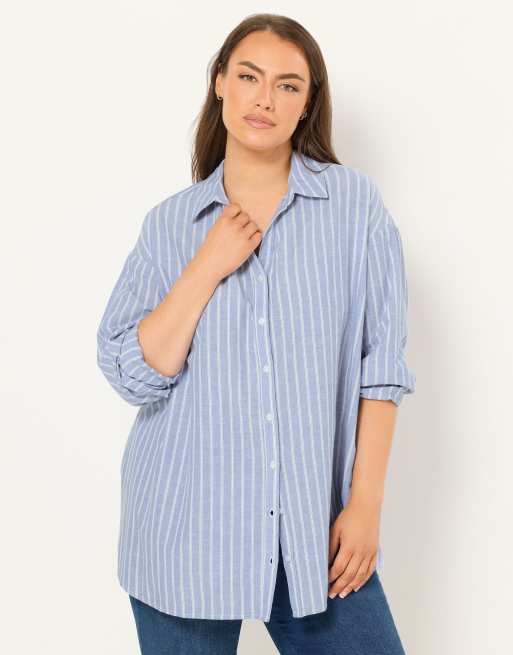 Yours Clothing Stripe linen shirt in blue