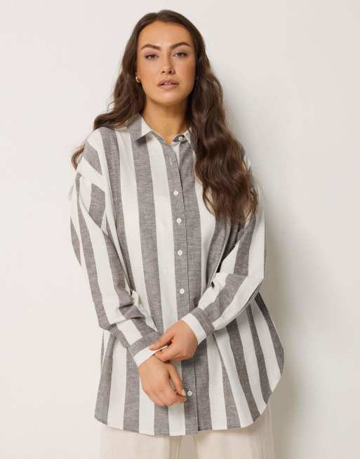Yours Clothing Stripe linen shirt in brown