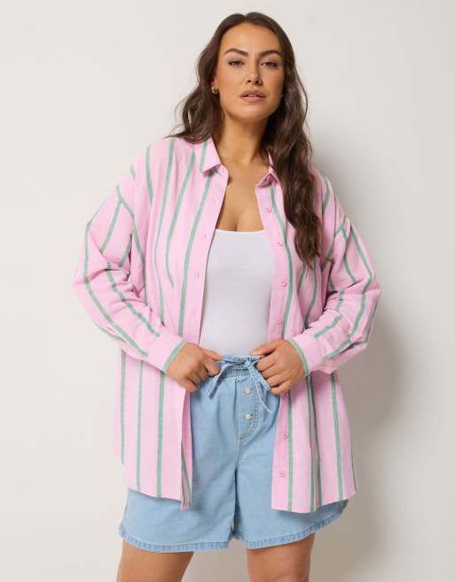 Yours Clothing Stripe linen shirt in pink