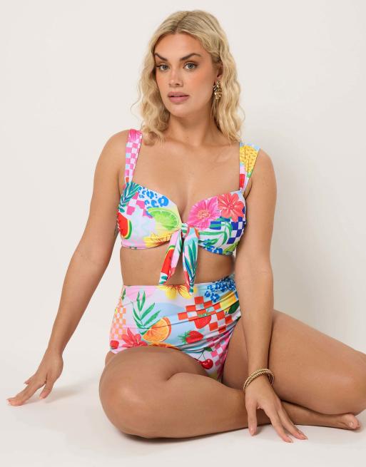 Yours Clothing Tropical wired bikini top in ivory