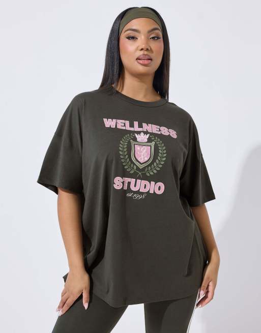 Yours Clothing 'wellness studio' active t-shirt in grey