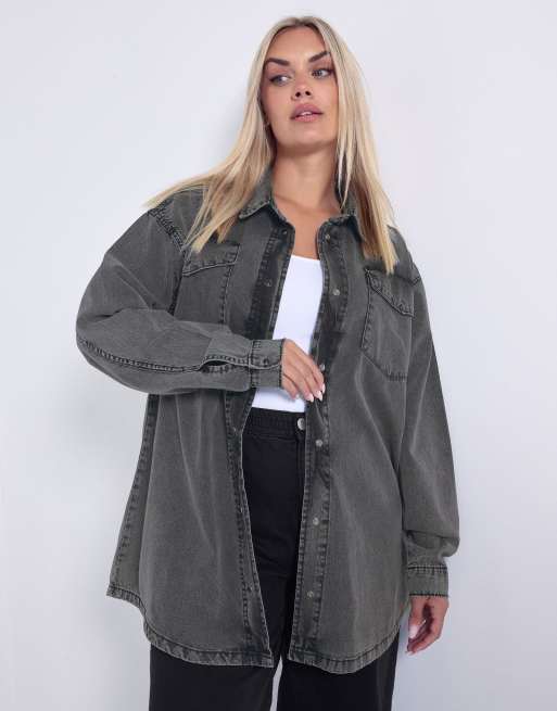 Yours Clothing Western denim shirt in black