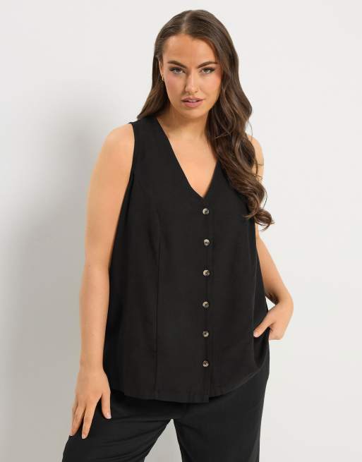 Yours Clothing Woven linen waistcoat in black
