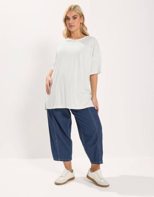 Yours Clothing Woven panel oversized t-shirt in white